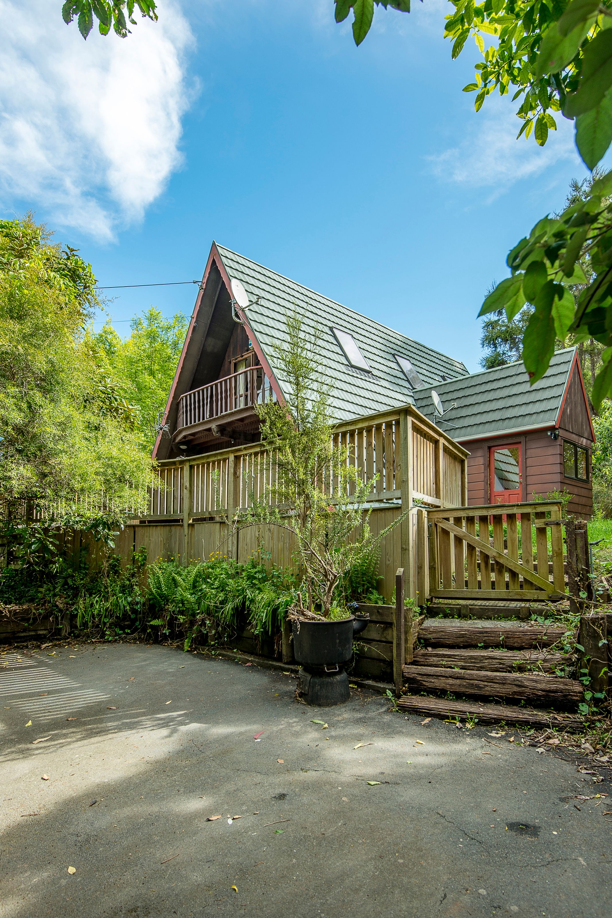 Step into a tree-clad sanctuary of privacy and quiet where a quaint chalet style
